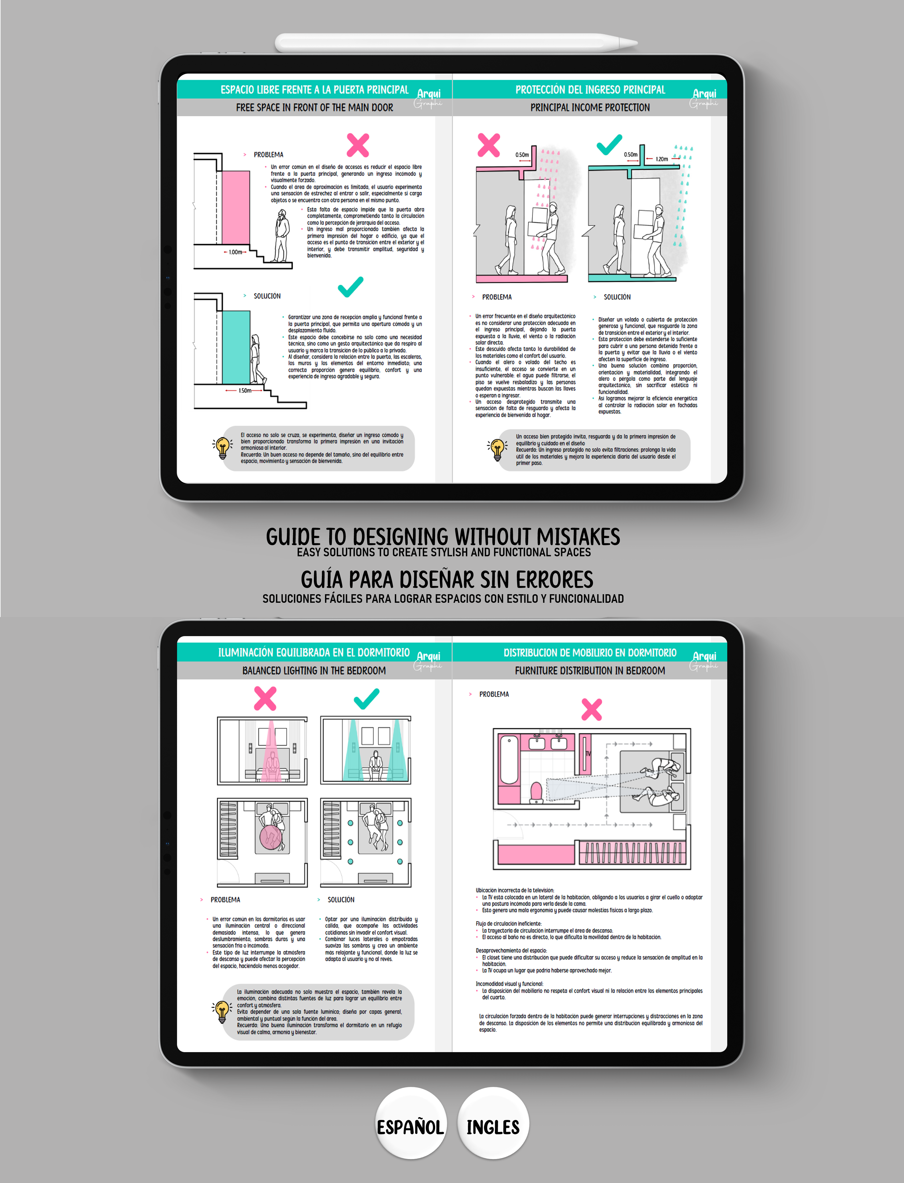 Did you know that small design mistakes can affect the comfort, flow, and aesthetics of your spaces?. This eBook brings together over 100 common mistakes and their practical solutions, explained clearly and visually, so you can design with confidence and fearlessness, discover how to optimize every room.