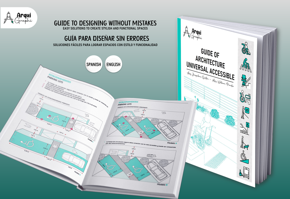 Universal Guide to Accessible Architecture, contains more than 100 pages of sketches with optimal measurements so that every user can use independently. If you are an architecture student, architect, builder or interested in architectural accessibility, this is the Ebook for you.
